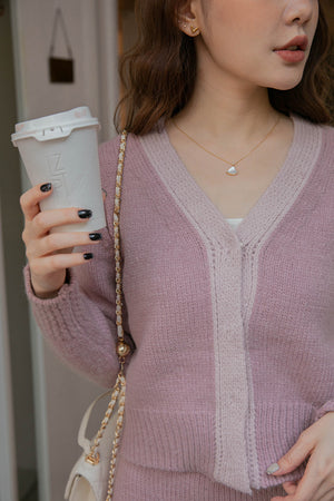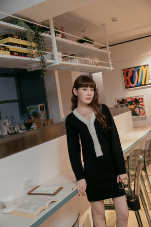 【2点SET】配色Vネックニット/ミニスカートセットアップ F