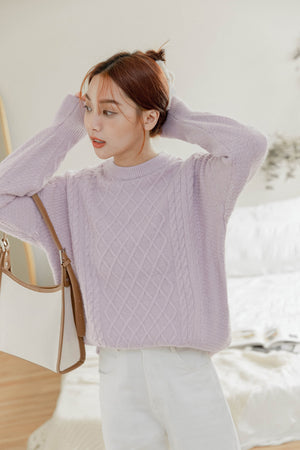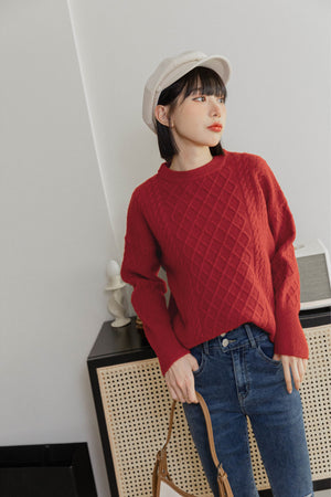 クルーネックケーブルニットプルオーバー F