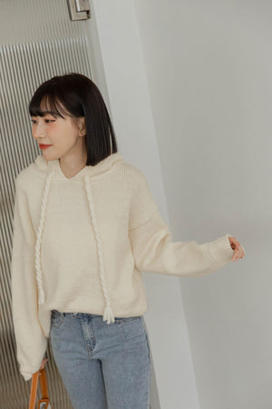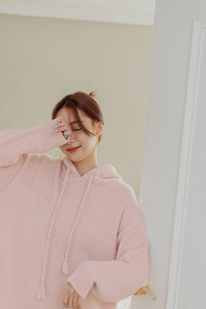 ケーブル編みストラップニットパーカー F