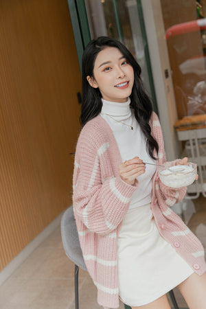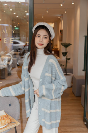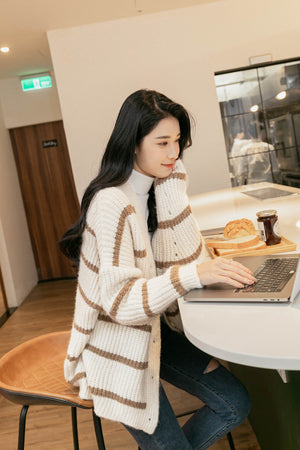 Vネックルーズボーダーカーディガン F