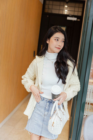 ケーブル編みジップパーカージャケット F