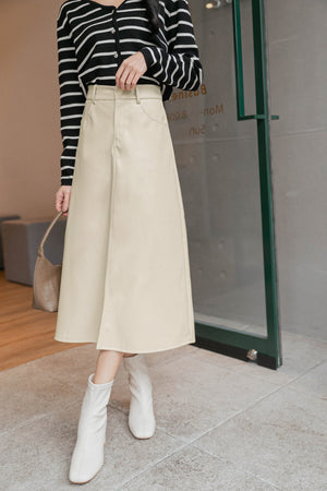 裏起毛レザー調ロングスカート S~2L