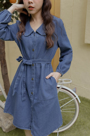 ベルト付きロゴボタンデニムワンピース S~L