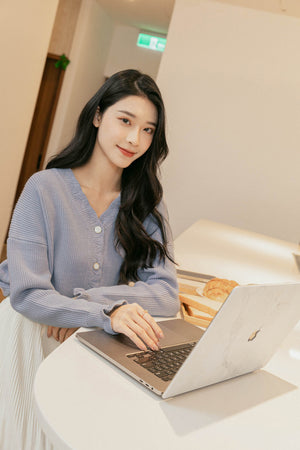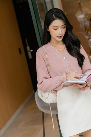 Vネックスカラップニットカーディガン F【2212154】