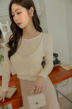 フェイクレイヤードニットトップス F【2310287】