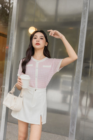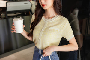 チェック柄ツイードニットトップス F【2312027】