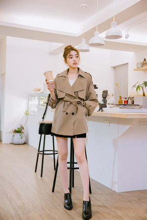 短めの丈がデイリーに使える気軽さもありながら、トレンチのきちんと感も兼ね揃えた万能なデザイン。