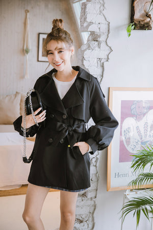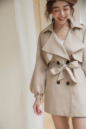 パフスリーブ大襟ショート丈トレンチコート F