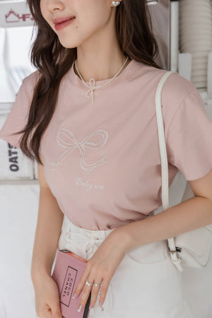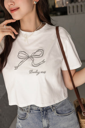 リボン刺繡ショートトップス F【2402099】
