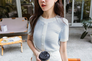チェック柄ハートボタン半袖トップス F 【2403100】