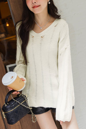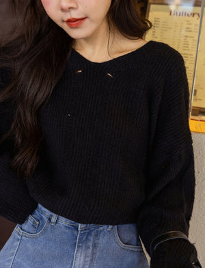 Vネックニットトップス F【2411016】
