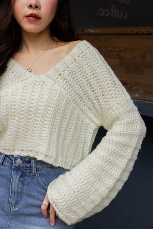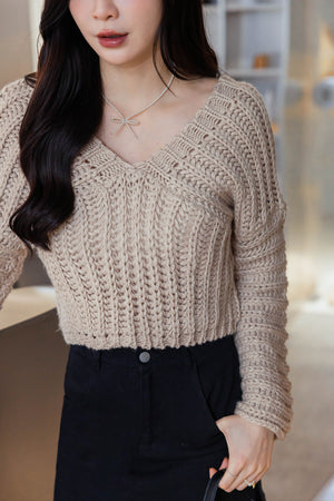Vネックメッシュニットトップス F【2411062】
