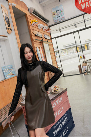 ベルト付き裏起毛レザーキャミワンピ S~3L【2409163】