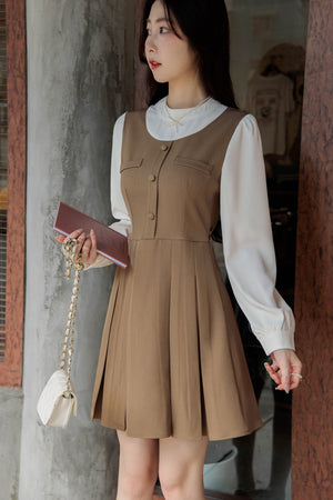 フェイクレイヤード異素材ワンピース S~3L【2409180】