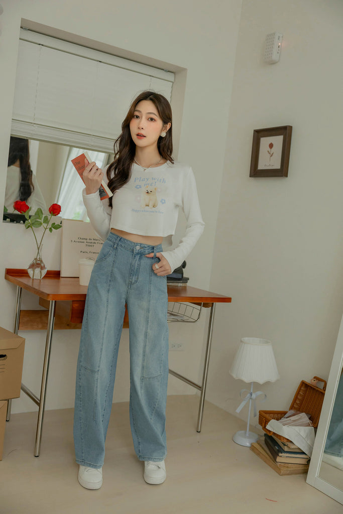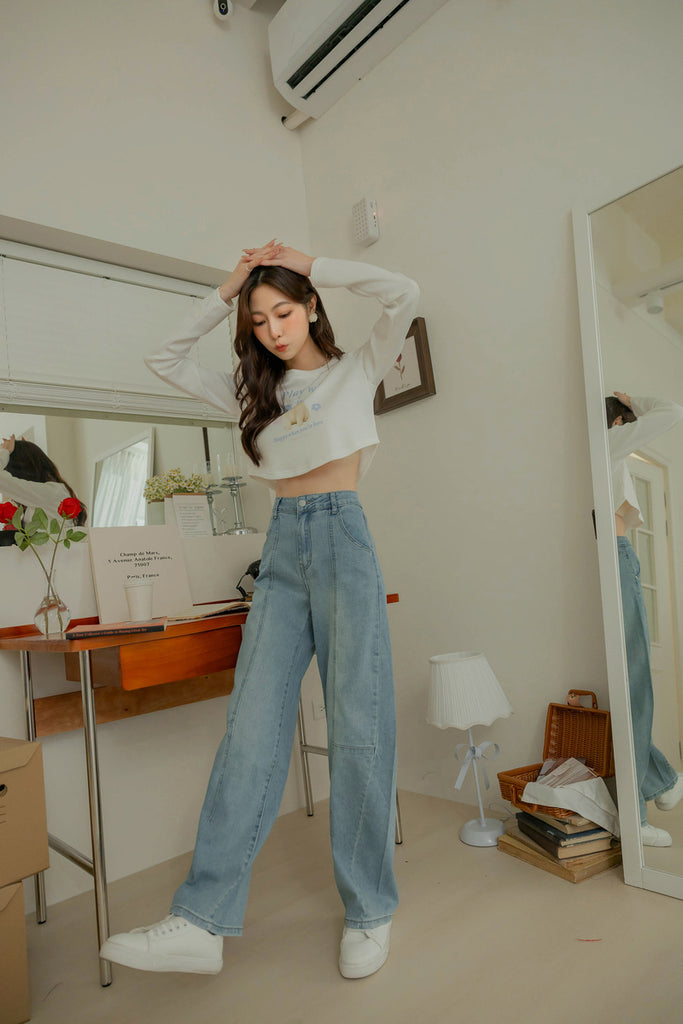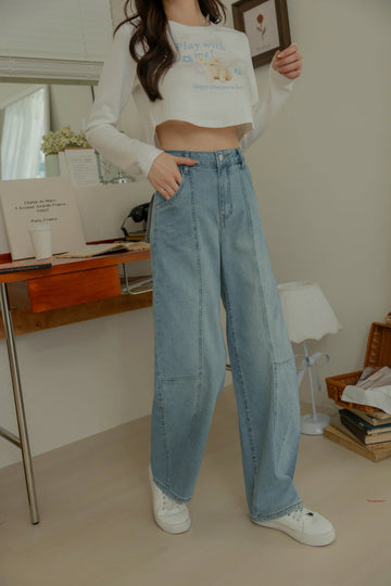 センターシーム入りカーブデニムパンツ S~3L【2503261】