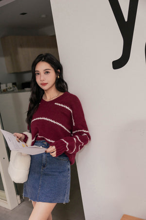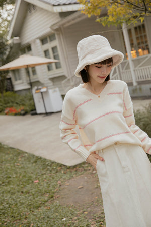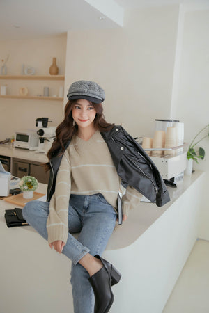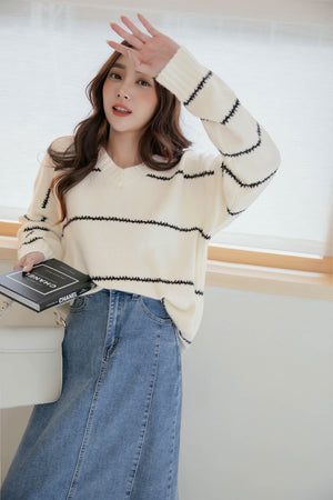 Vネック配色ニットセーター F【2110026】