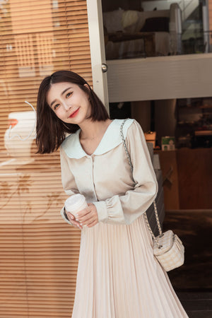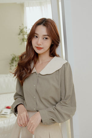 コーデュロイ配色大襟トップス S~L【2212108】