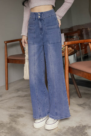 ビッグポケットダブルボタンワイドデニム S~3L【2403181】