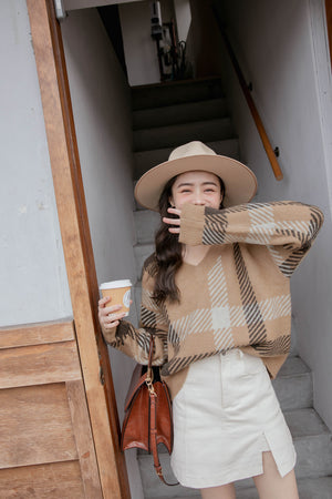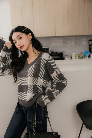 チェック柄Vネックニットセーター F~FF【2409168】