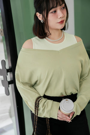 フェイクレイヤードショートスウェット S~3L【2409176】