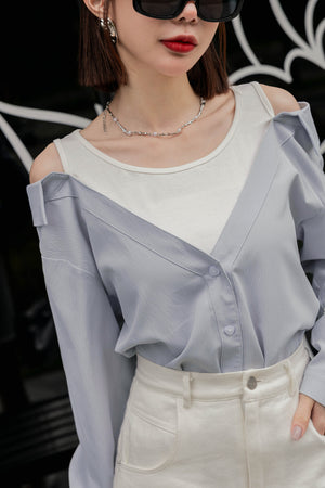 フェイクレイヤード異素材シャツ S~3L【2409192】