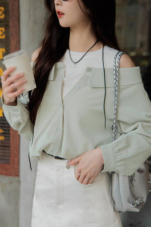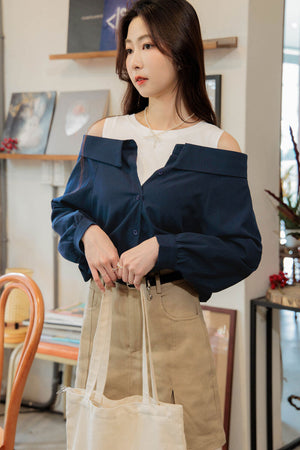 肩カットアウト異素材トップス S~3L【2503001】