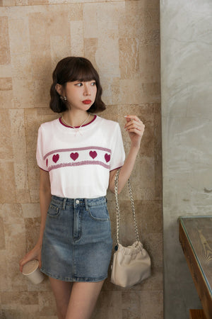 ハート柄刺繡Tシャツ F~FF【2503062】