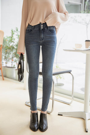 スリーボタンスキニーデニムパンツ S~XL