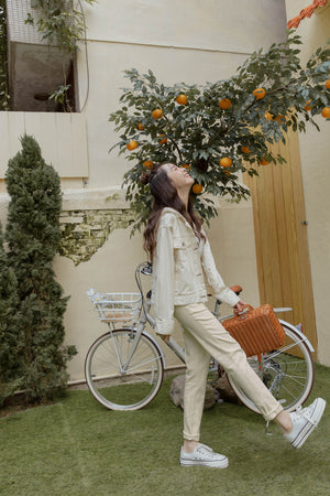 バックゴムツシンプルストレートデニムパンツ S~XL