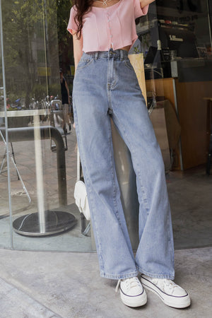 バックゴムワイドストレートデニムパンツ S~3L【2403135】