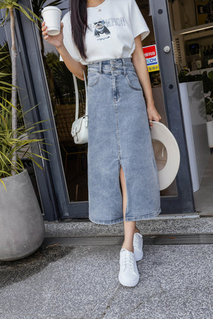 ダブルボタン裾スリットデニムスカート S~3L 【2403170】
