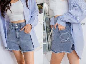 ダブルボタンハートフリンジヘムデニムショートパンツ S~3L 【2403185】