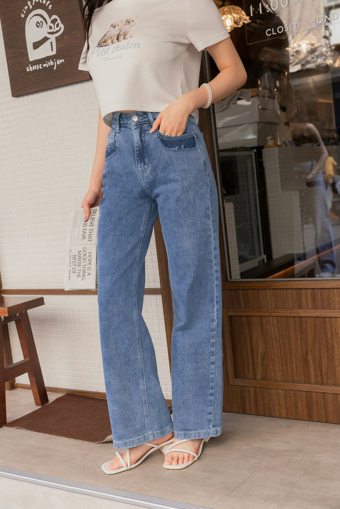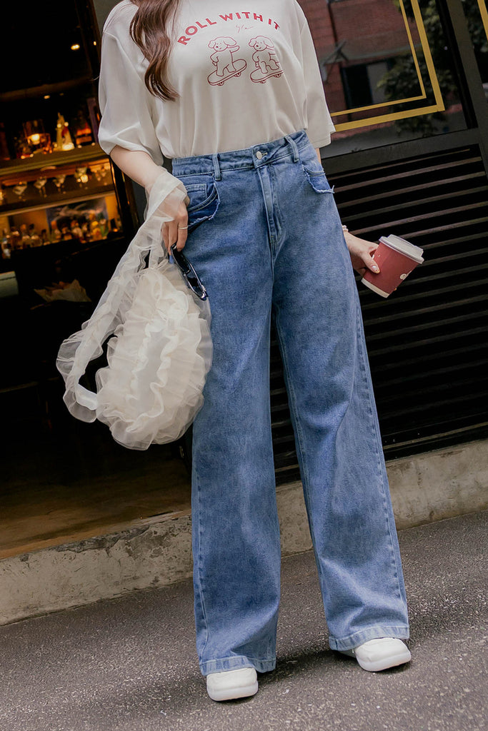 ポケットデザインワイドデニムパンツ S~3L【2403265】