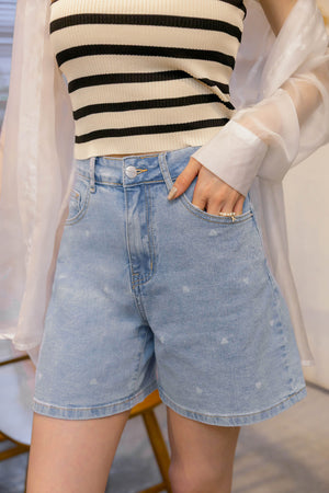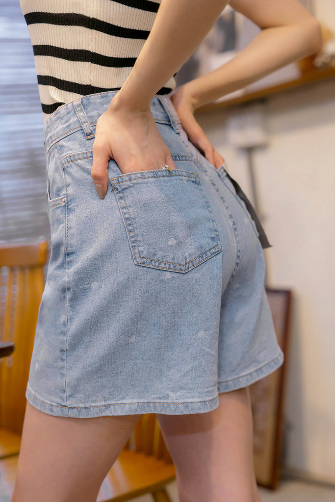 ハート柄デニムショートパンツ S~3L【2503272】
