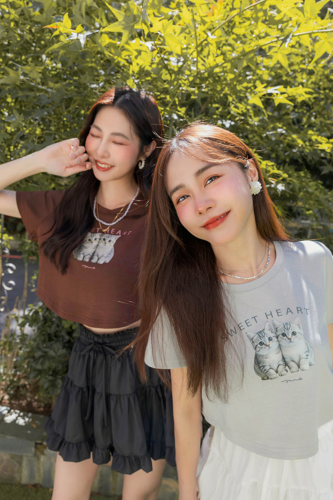 ショート丈超ストレッチ猫プリントtシャツ S~3L【2509117】