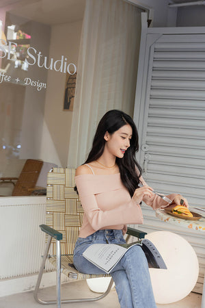 オフショルダーニットトップス F
