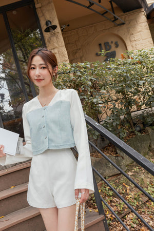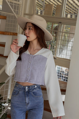 ハートボタンツイードショートブラウス S~L