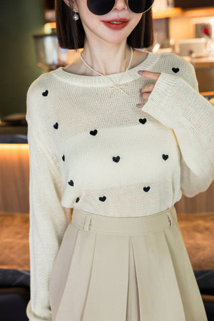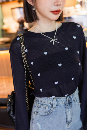 ハート刺しゅうニットトップス F【2410029】