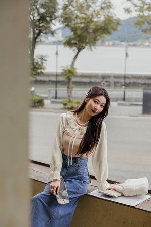 2点セット・レースフリルブラウス&ベスト F【2410065】