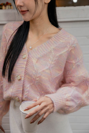 ダイヤ編みミックスカラーカーディガン F【2411045】