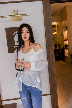 ロング丈ツヤ感シアーシャツ F【2502010】