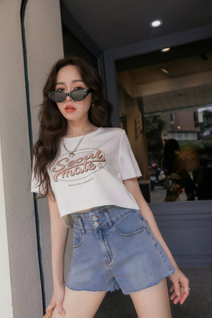ショート丈ロゴプリントtシャツ S~3L【2503041】