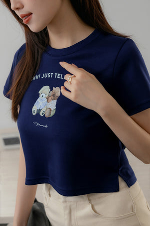 熊プリント超ストレッチTシャツ S~3L【2503131】