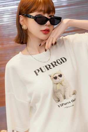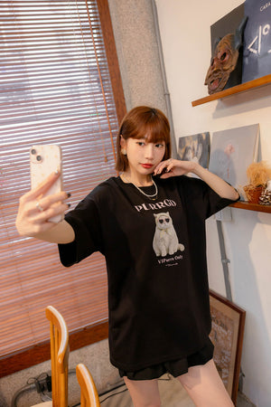 オーバーサイズ超ストレッチ猫プリントTシャツ S~3L【2509008】