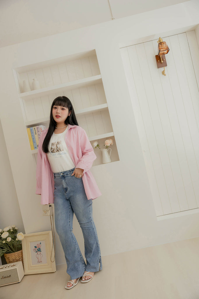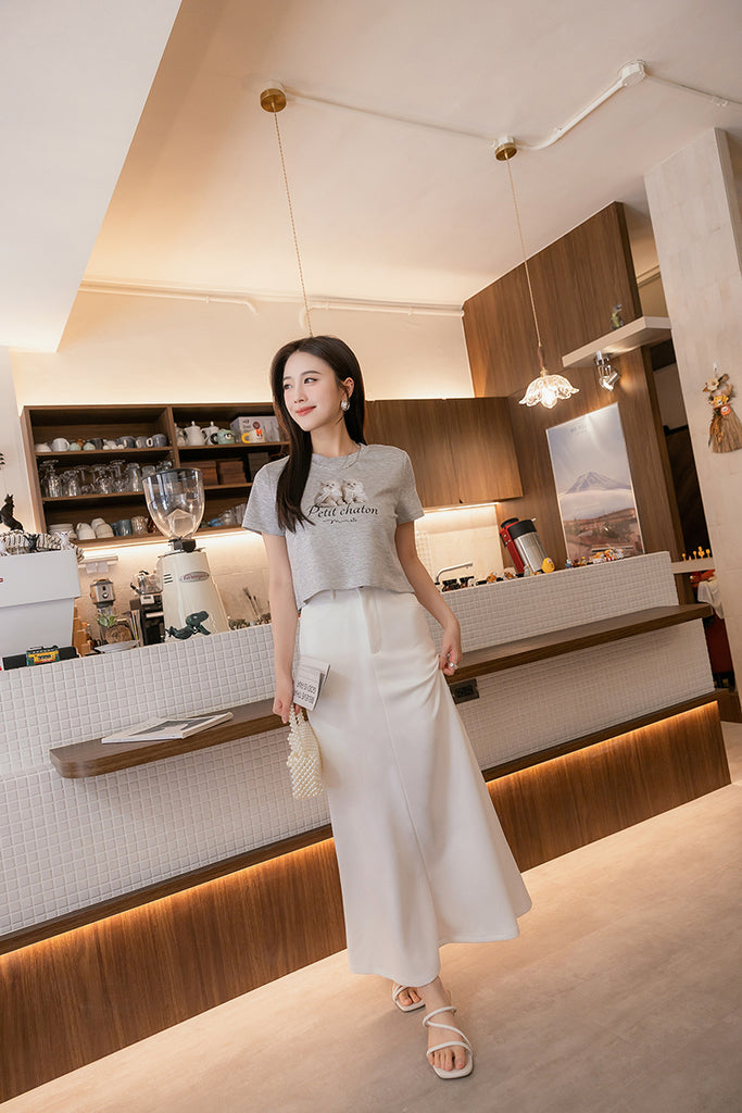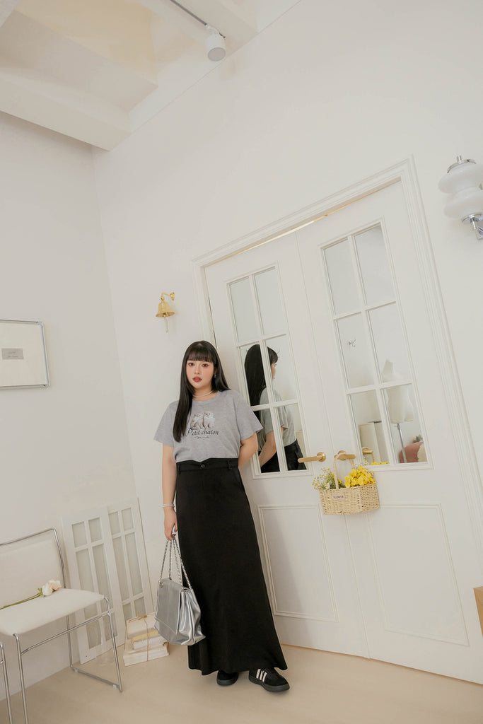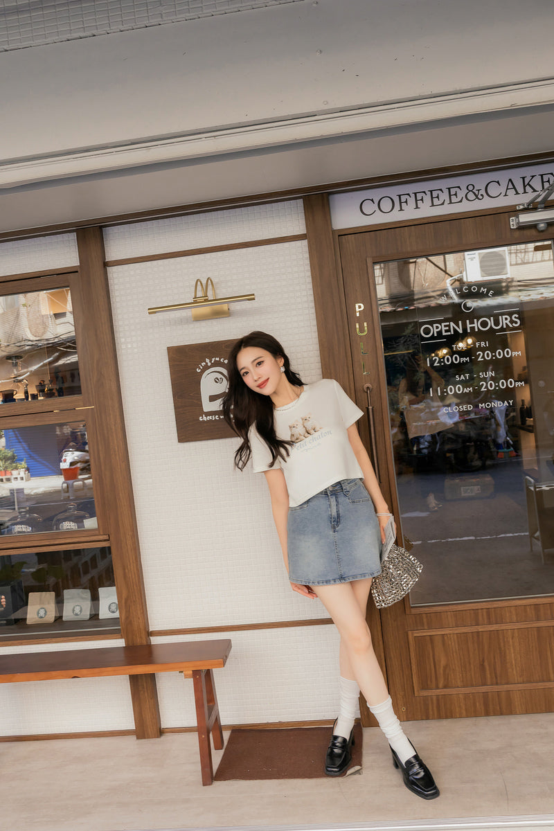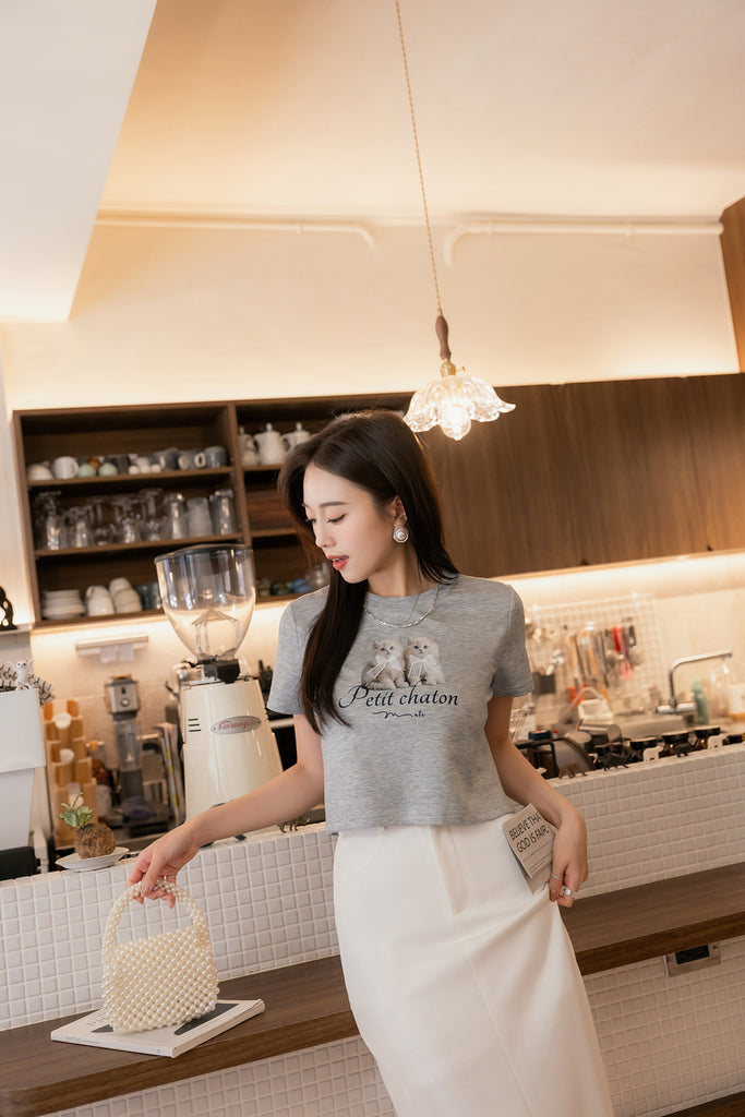 ショート丈超ストレッチ猫プリントtシャツ S~3L【2509074】