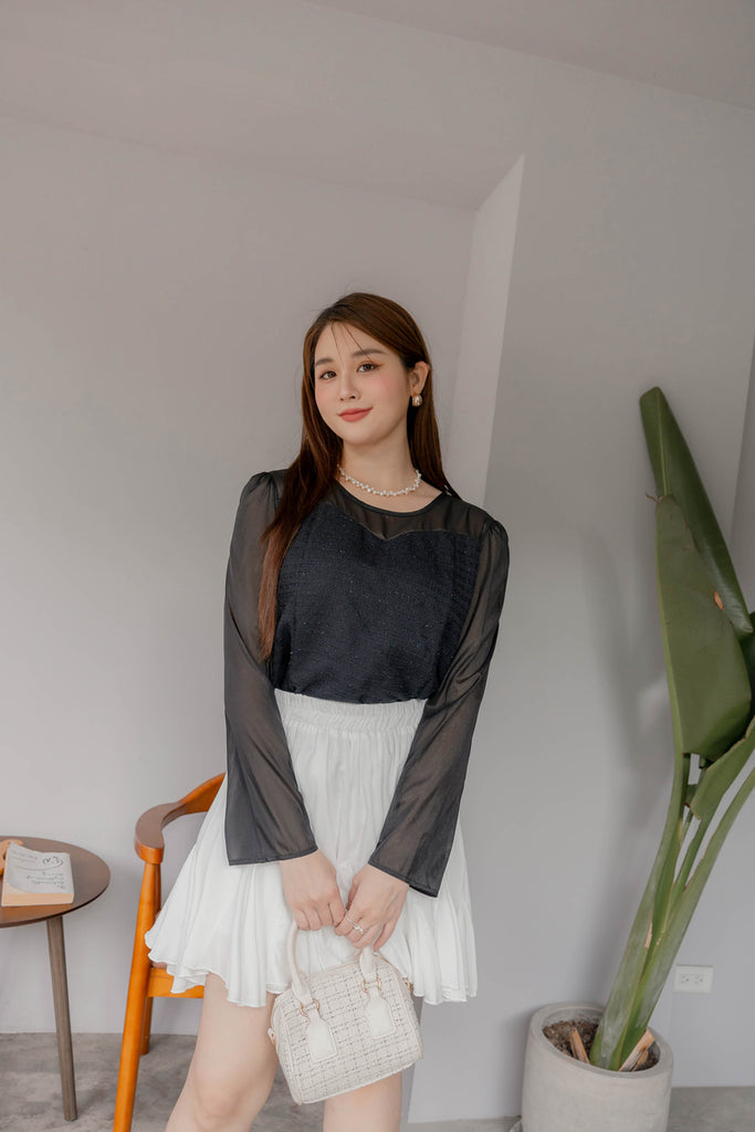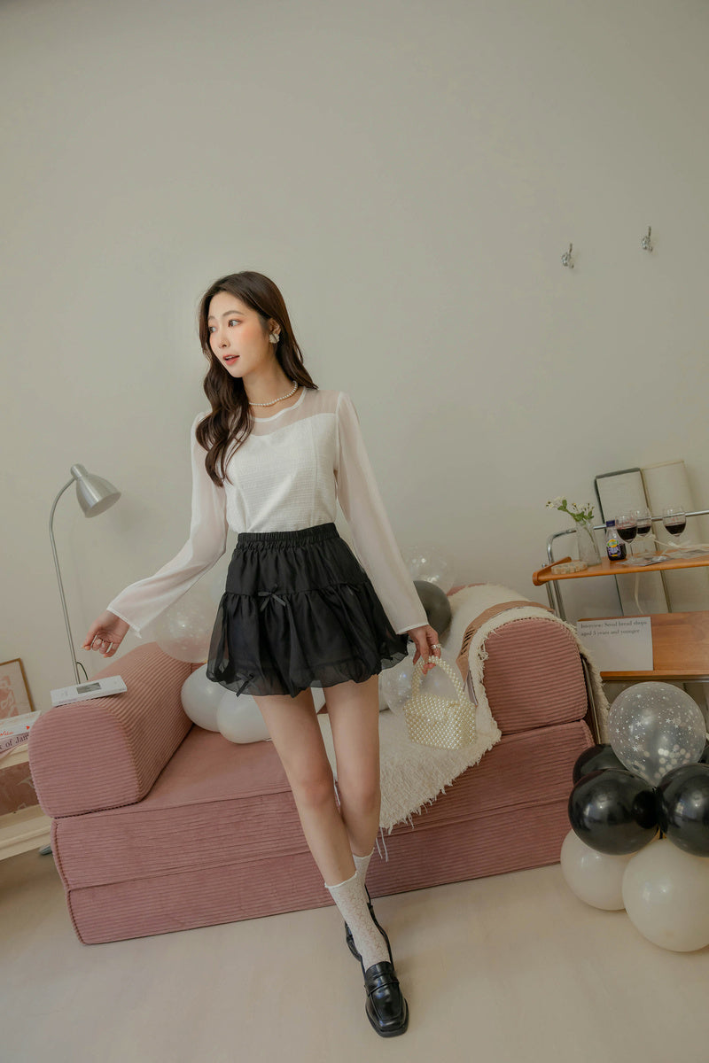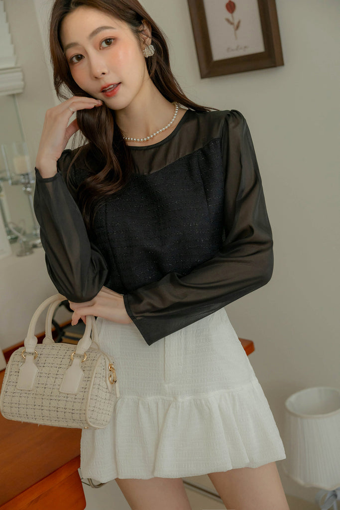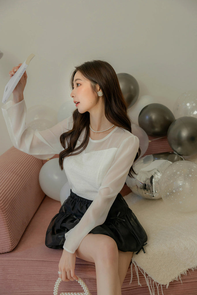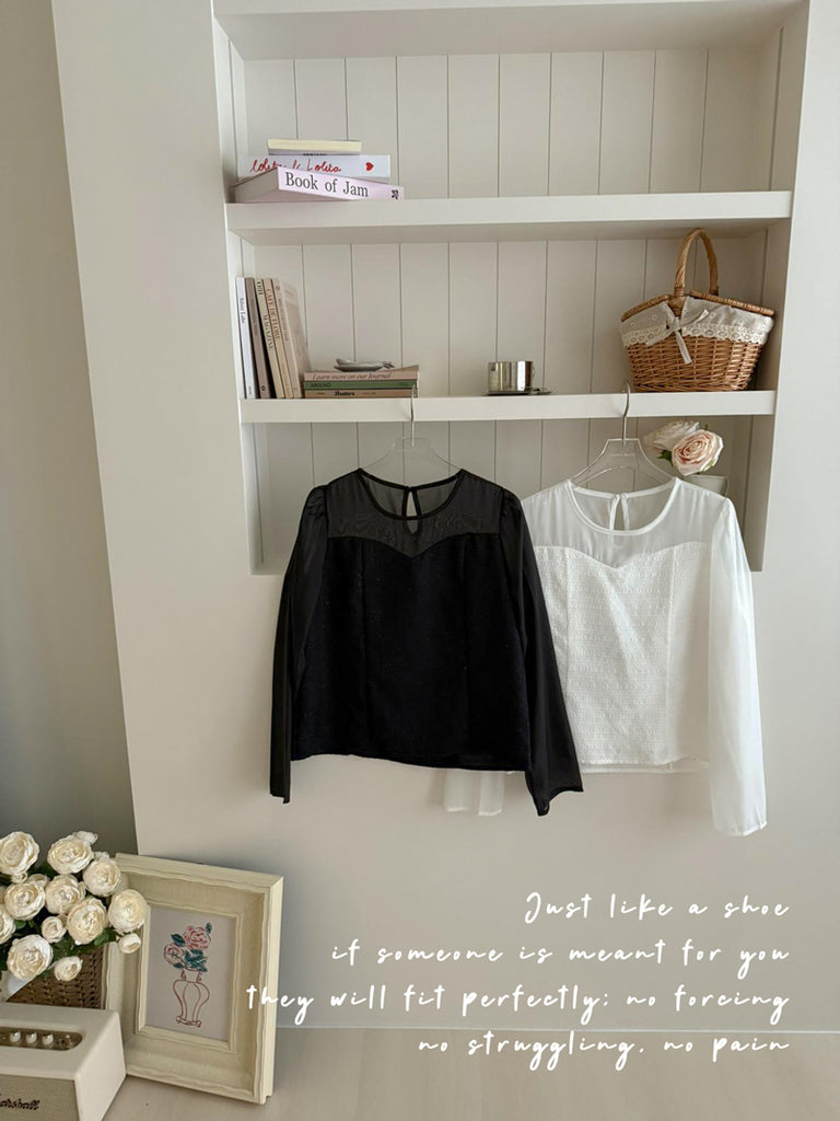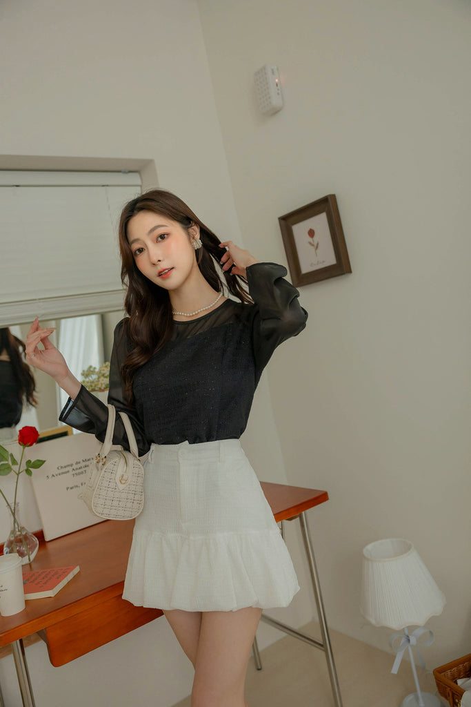 異素材ハートネックツイード風ブラウス S~3L【2509077】