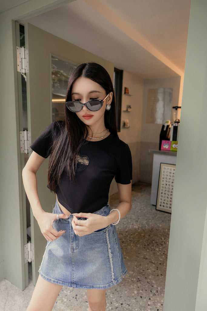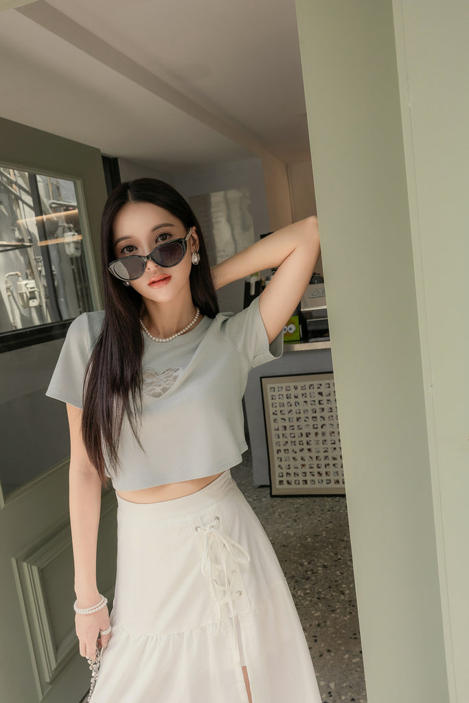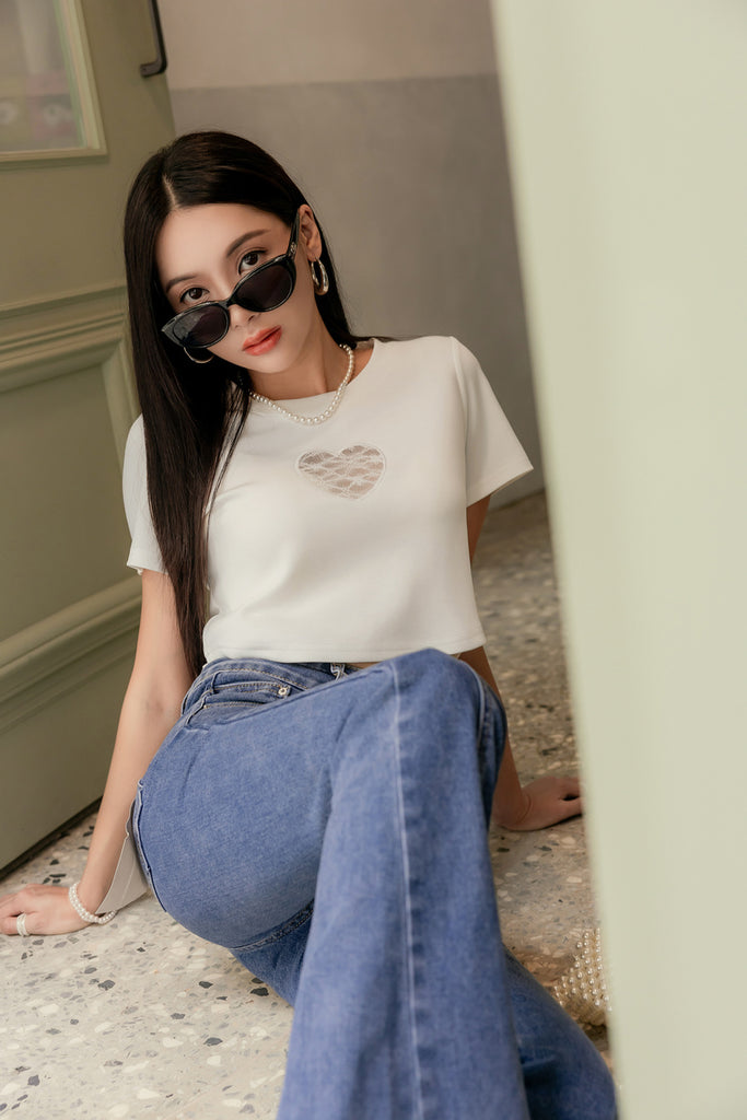 ショート丈超ストレッチハートTシャツ S~3L【2509112】
